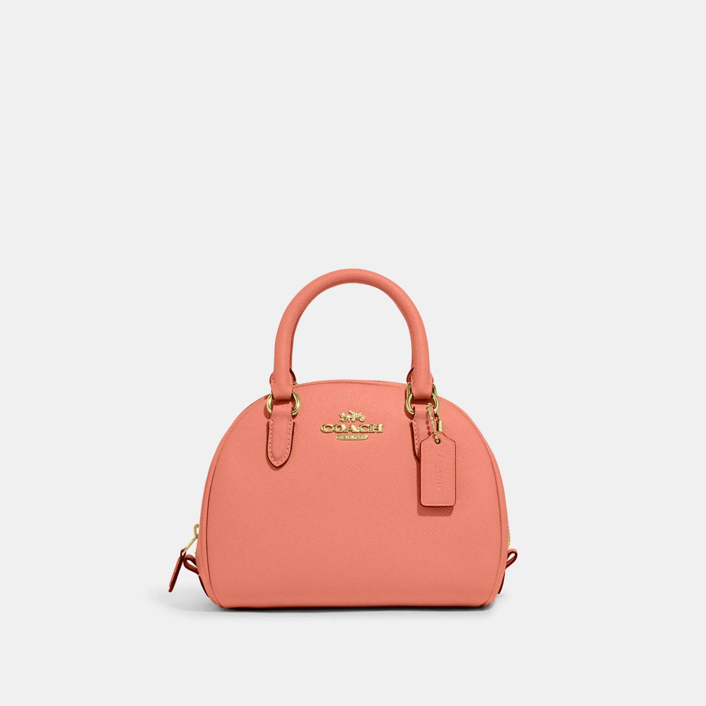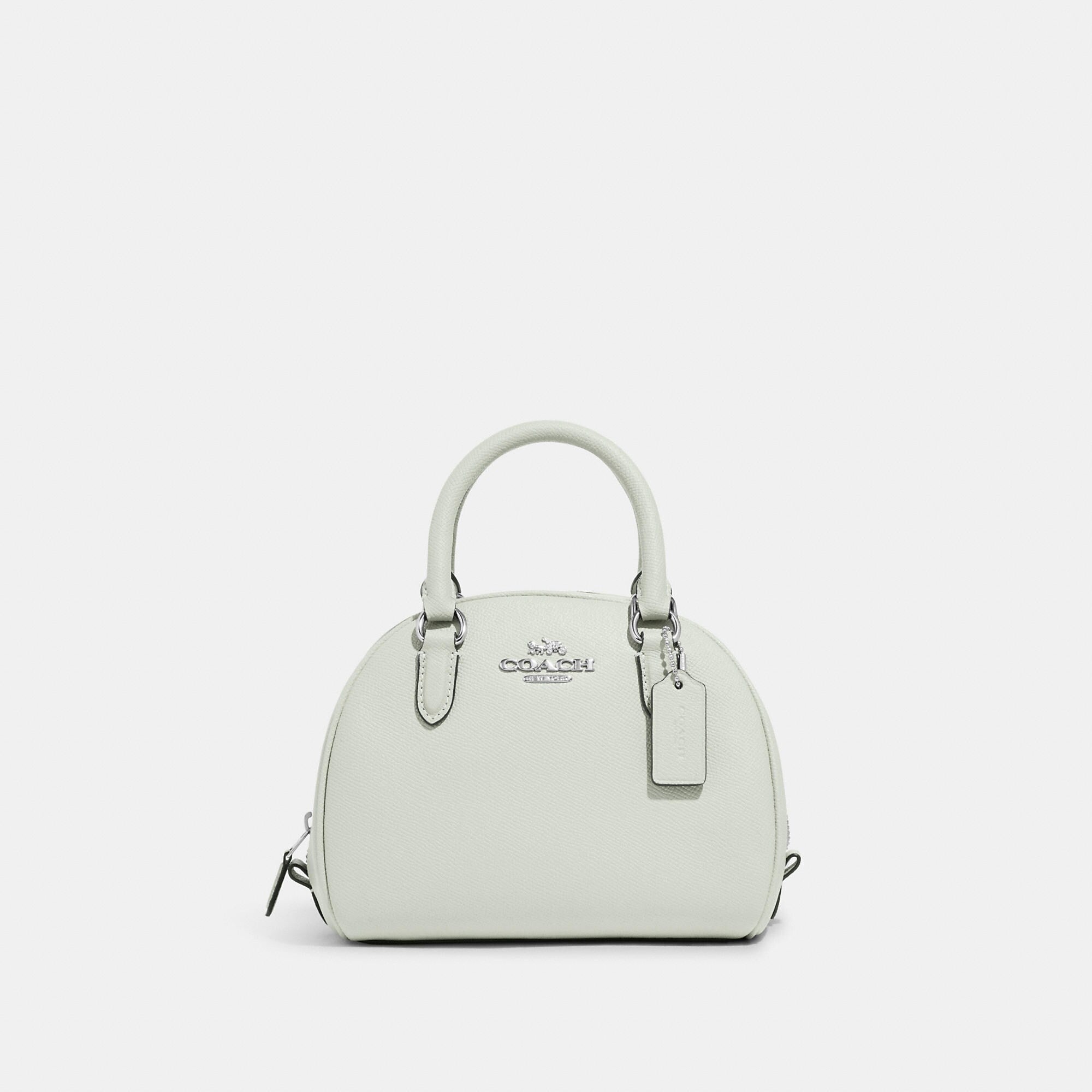 Crossgrain leather Inside multifunction pocket Zip closure fabric lining Handles with 2 3/4 drop Detachable strap with 22 1/2 drop for shoulder or crossbody wear 8 (L) x 6 (H) x 5 (W) Style No. CA202